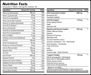 A unique combination of Glucosamine and Chondroitin help increase cartilage strength, elasticity, and helps rebuild broken down cartilage tissues.