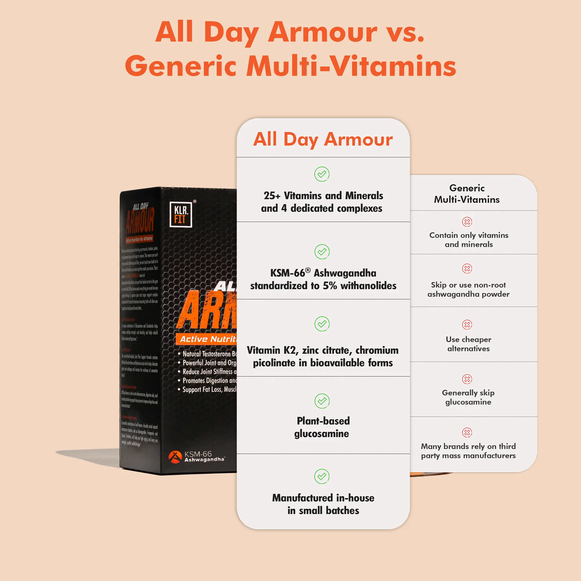 That’s where All Day Armour comes in. Designed for elite Athletes, who put their body to test in the gym or in the field, All Day Armour packs everything you need into one single offering. A superior Joint and organ support complex combined with natural testosterone boosting herbs will allow you to push your body behind human limits.