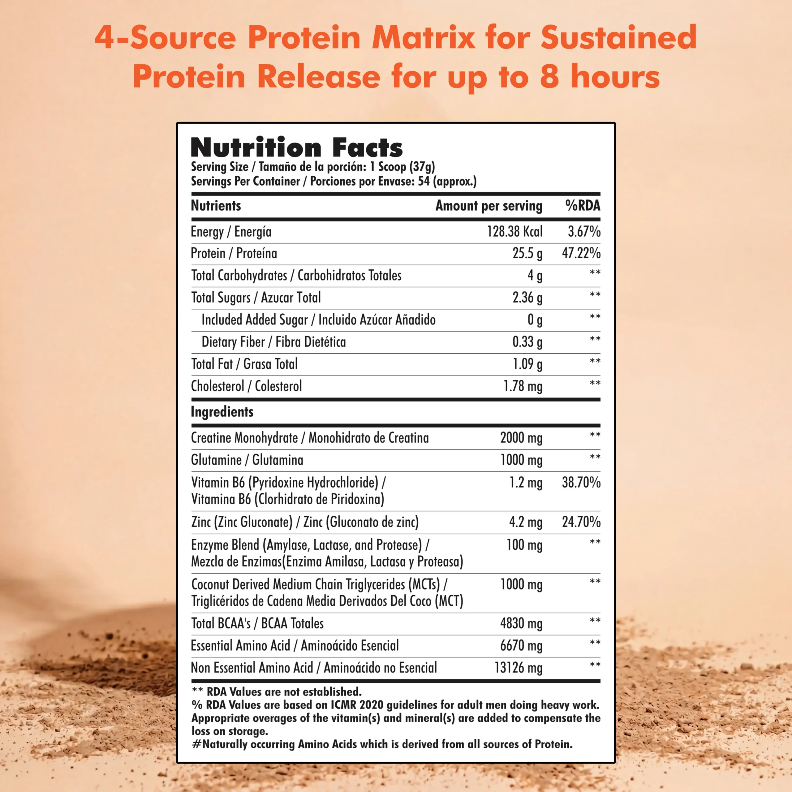 Offers unmatched recovery support: Enriched with the goodness of whey proteins, BCAAs, Creatine Monohydrate, and Glutamine, this protein blend helps reduce muscle soreness and fatigue like none other. Best for post-workout consumption, it helps the muscles rejuvenate and recover from the stress of heavy workouts.