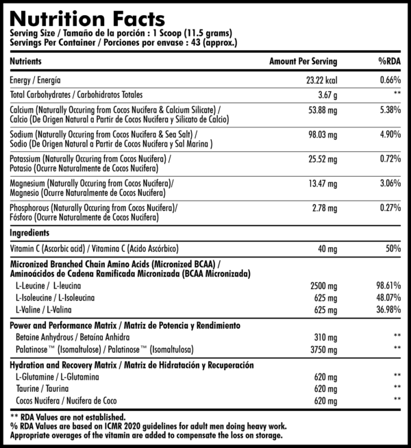 As a dietary supplement, mix 1 scoop into 250 ml of cold water and consume post-workout. On non-training days, Consume one serving at any time throughout the day.