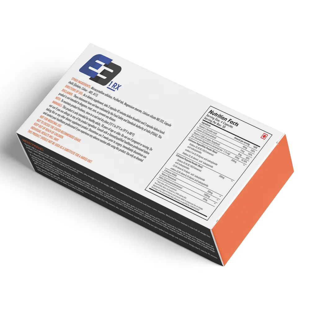 Unlike generic weight gain pills which only make you gain temporary water weight, E3 1RX contains safe, evidence-backed ingredients that help you gain quality body weight and maintain it. Simply take 2 capsules 45 minutes before breakfast and lunch, and watch your body transform.