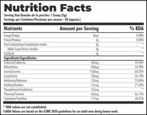 Amino acids are compounds naturally composed of nitrogen, carbon, hydrogen, and oxygen. The human body uses amino acids to make proteins to help break down food, grow, repair body tissue, build muscle, and perform many other important body functions. Your body needs about 20 different amino acids to function properly. Out of the 20 amino acids that are important for your health, only nine are considered “essential” otherwise known as EAA or Essential Amino Acids. Essential amino acids are the nine amino acids that your body cannot produce itself. We must replenish them through dietary proteins and supplements. EAAs build vital proteins in the body that are used to create tissues, organs, and muscles. They also play a vital role in optimizing liver function and neurotransmitters in the brain.