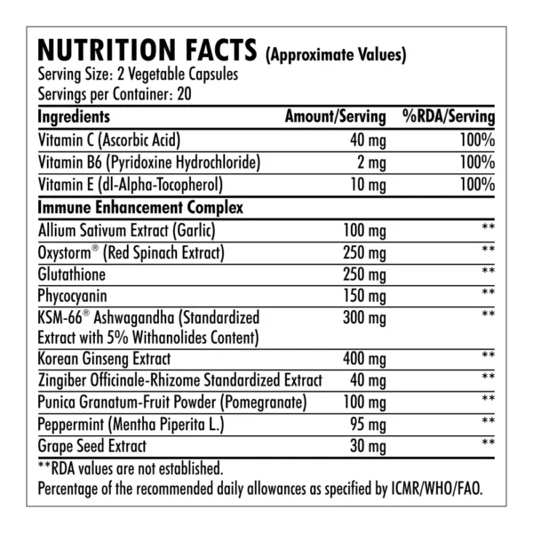 • Vitamin C (40 mg) – Supports white blood cell function and antioxidant defense
