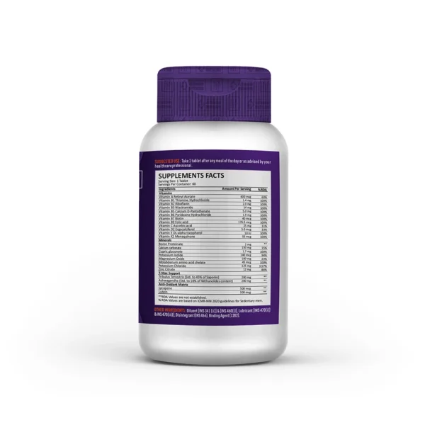 Vitamins and Minerals: Multi + Test includes essential vitamins and minerals to fill nutritional gaps, supporting overall health and promoting vitality.