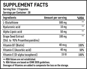 Even Skin Tone: L-Glutathione contributes to a more even skin tone, minimizing the appearance of dark spots.