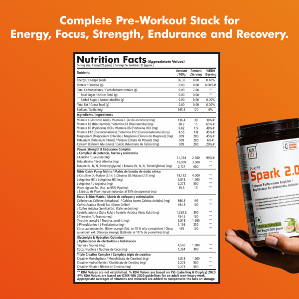 Spark 2.0 is built upon clinically dosed and scientifically backed ingredients, proven to maximize workout performance and produce results. Athletes, of all levels realize, that in order achieve the most effective training session energy, strength, endurance, and focus are a must. Therefore, a complete pre-workout supplement should support all of these benefits. The synergistic combination of ingredients found in SPARK 2.0 helps prepare your body physiologically and psychologically by amplifying energy, enhancing the mind-muscle connection, and supporting increases in muscular strength, power, and endurance. From top to bottom, It will help keep you train stronger and longer.