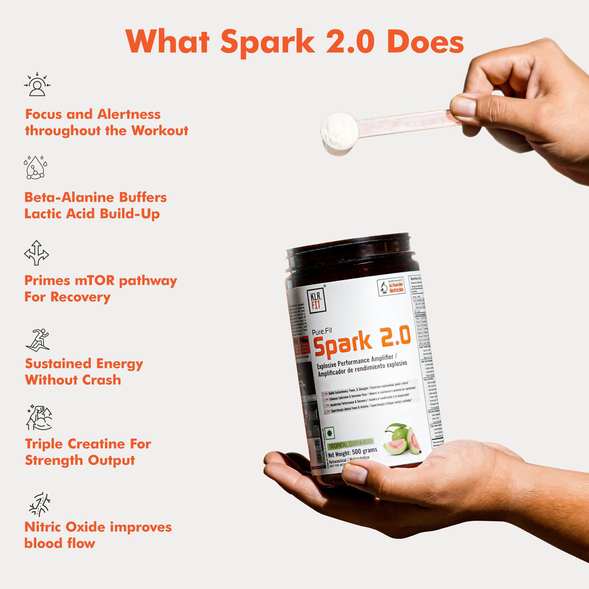 Spark 2.0 is built upon clinically dosed and scientifically backed ingredients, proven to maximize workout performance and produce results. Athletes, of all levels realize, that in order achieve the most effective training session energy, strength, endurance, and focus are a must. Therefore, a complete pre-workout supplement should support all of these benefits. The synergistic combination of ingredients found in SPARK 2.0 helps prepare your body physiologically and psychologically by amplifying energy, enhancing the mind-muscle connection, and supporting increases in muscular strength, power, and endurance. From top to bottom, It will help keep you train stronger and longer.
