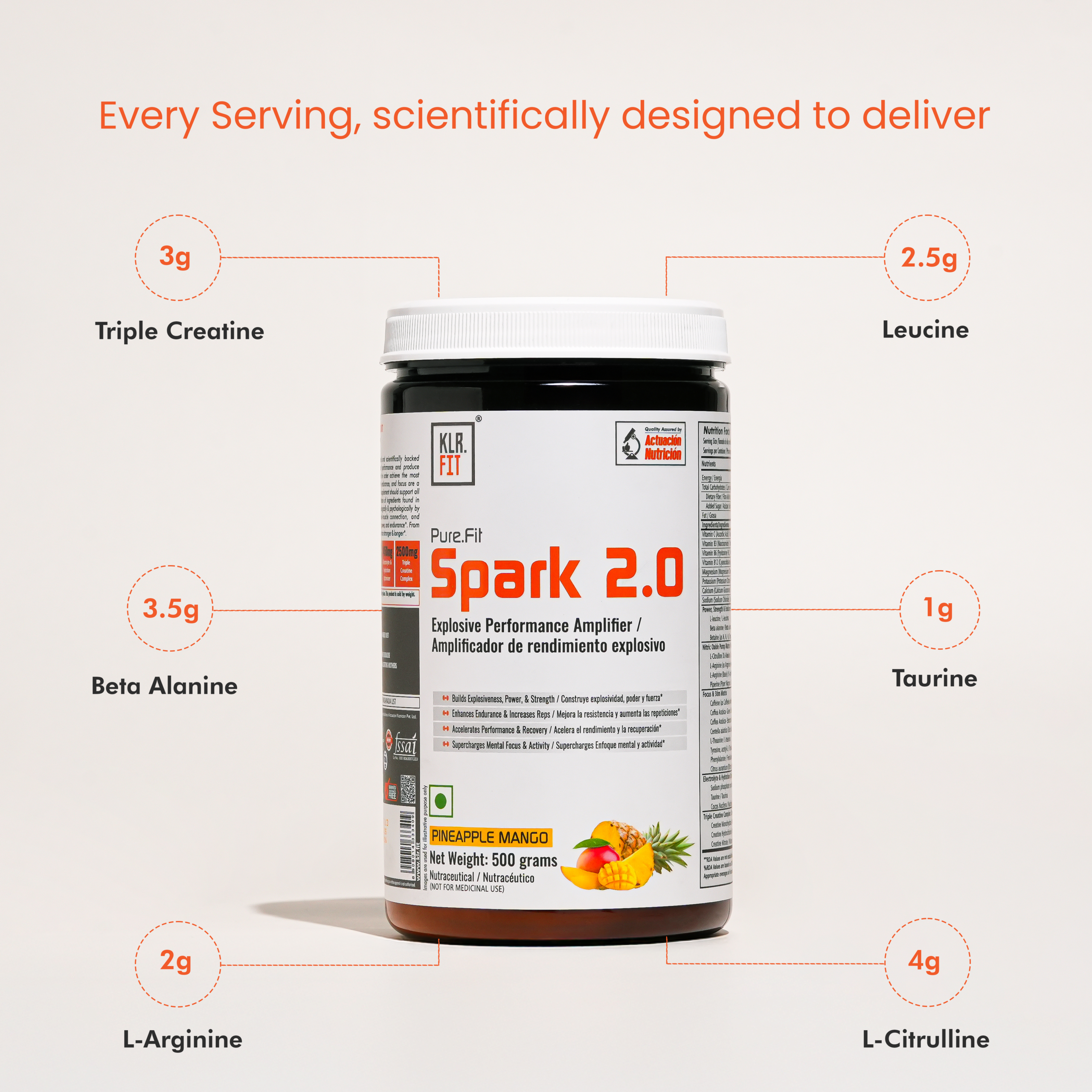 Spark 2.0 is built upon clinically dosed and scientifically backed ingredients, proven to maximize workout performance and produce results. Athletes, of all levels realize, that in order achieve the most effective training session energy, strength, endurance, and focus are a must. Therefore, a complete pre-workout supplement should support all of these benefits. The synergistic combination of ingredients found in SPARK 2.0 helps prepare your body physiologically and psychologically by amplifying energy, enhancing the mind-muscle connection, and supporting increases in muscular strength, power, and endurance.  From top to bottom, It will help keep you train stronger and longer.