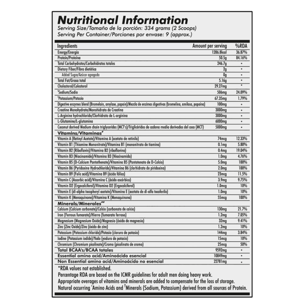 A Scientific Blend of Proteins with Added Benefits of Creatine Monohydrate, L-arginine and L-Glutamine.