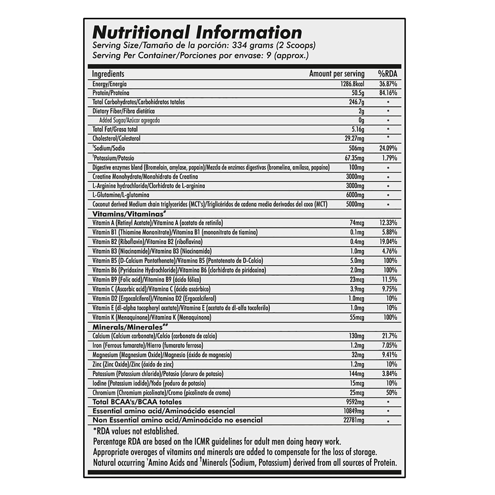 Warrior Mass XXXL is an advanced mass building formula aimed at athletes looking to gain some serious muscle. We created the Warrior Mass XXXL with a single goal in mind: Maximum Muscle Growth. An active life, a fast metabolism or a weak appetite can hinder your aspirations to put on size. With around 1286.8 calories, 50.5 grams of blended protein and 3 grams of Creatine in each serving – the Warrior Mass XXXL is the ultimate weight gain formula. When combined with a balanced diet, and regular exercise, it can help you take your physique to its peak potential. Despite being loaded with calories, the Warrior Mass XXXL has a negligible amount of sugar and absolutely no unhealthy fats. While the 50.5g protein blend delivers your body the right mix of fast-acting and slow-acting proteins for optimal muscle growth, creatine spikes ATP production and Cell hydration thereby giving your body an extra punch to train harder and overcome plateaus. We’ve also added judicious amounts of Glutamine and L-Arginine to the mix that keep your body in a constant growth mode.